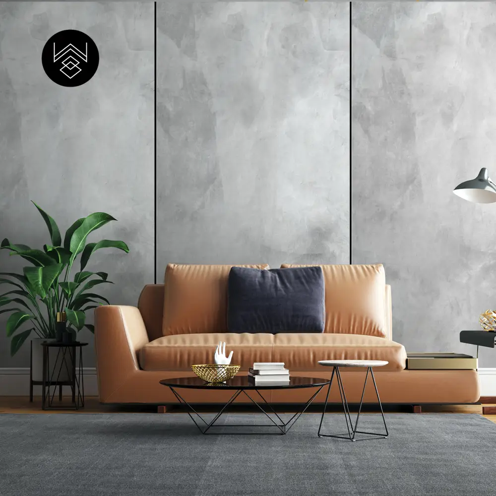 טפט דמוי בטון אריחים זה משתלב בצורה מושלמת עם ריהוט מודרני, עור, עץ טבעי, מתכת וטקסטיל ניטרלי. הוא מתאים לסגנון מודרני, תעשייתי רך, סקנדינבי ואורבני, ויכול לשמש כקיר מרכזי או כחיפוי מלא ליצירת תחושת המשכיות ואיזון.