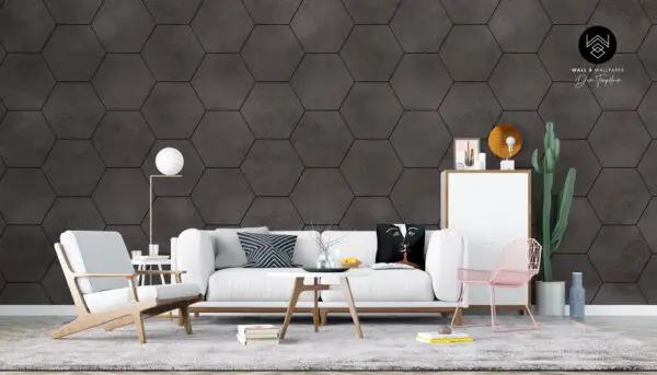 טפט דמוי בטון ייחודי המבוסס על מבנה משושים מדויק שיוצר קצב ויזואלי אחיד אך מרתק. כל יחידה מוסיפה שכבה נוספת של עומק, והחזרתיות יוצרת תחושת סדר מתוחכם.