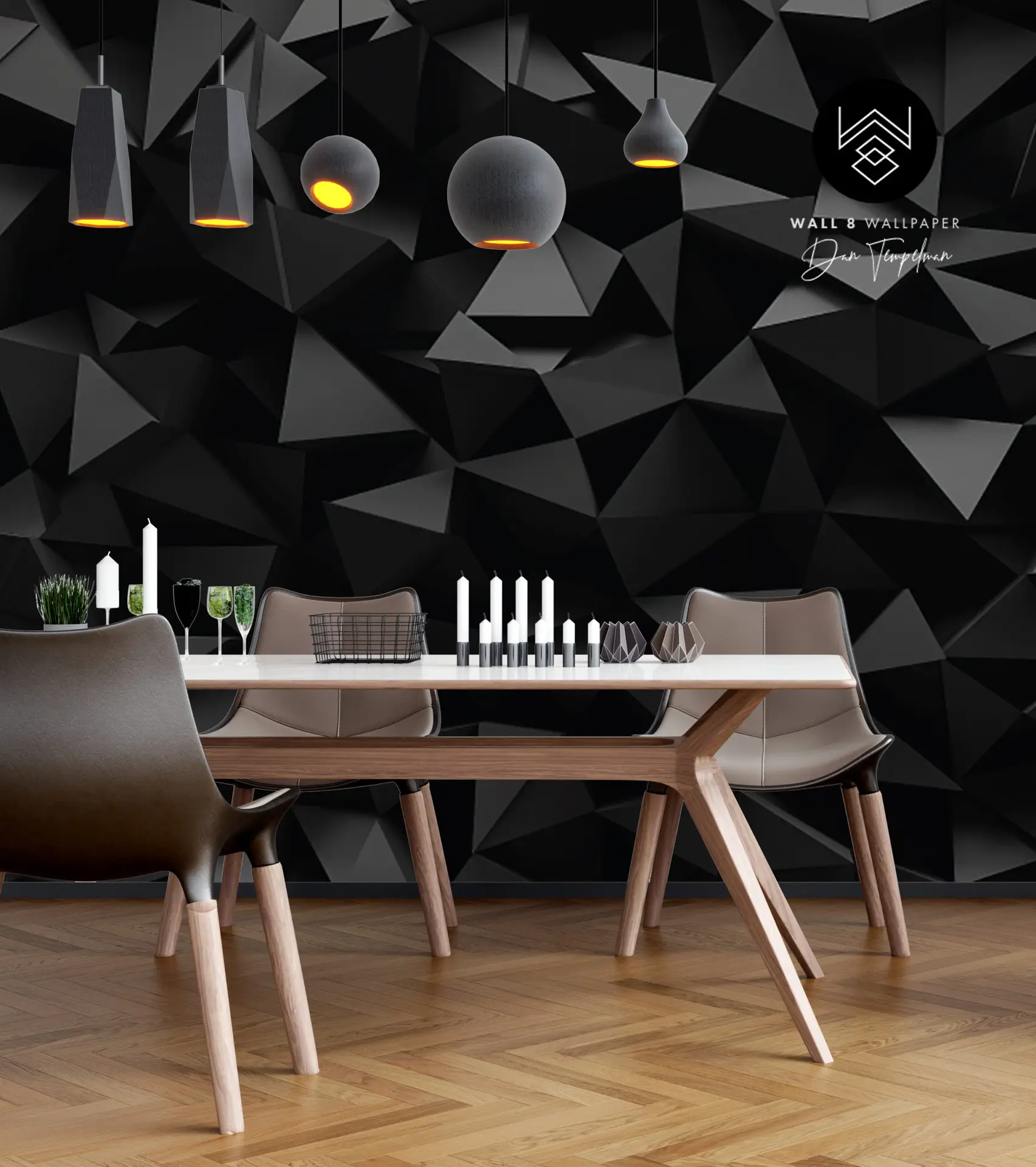 Noir Facet הוא טפט שמכניס אופי ברור מבלי להעמיס. הפאות הגיאומטריות יוצרות משחקי אור וצל עדינים, כך שכל מבט מגלה זווית חדשה. העיצוב הכהה מעניק תחושת יוקרה ושליטה, ומשתלב באופן טבעי עם ריהוט עץ, מתכת ותאורה חמה.